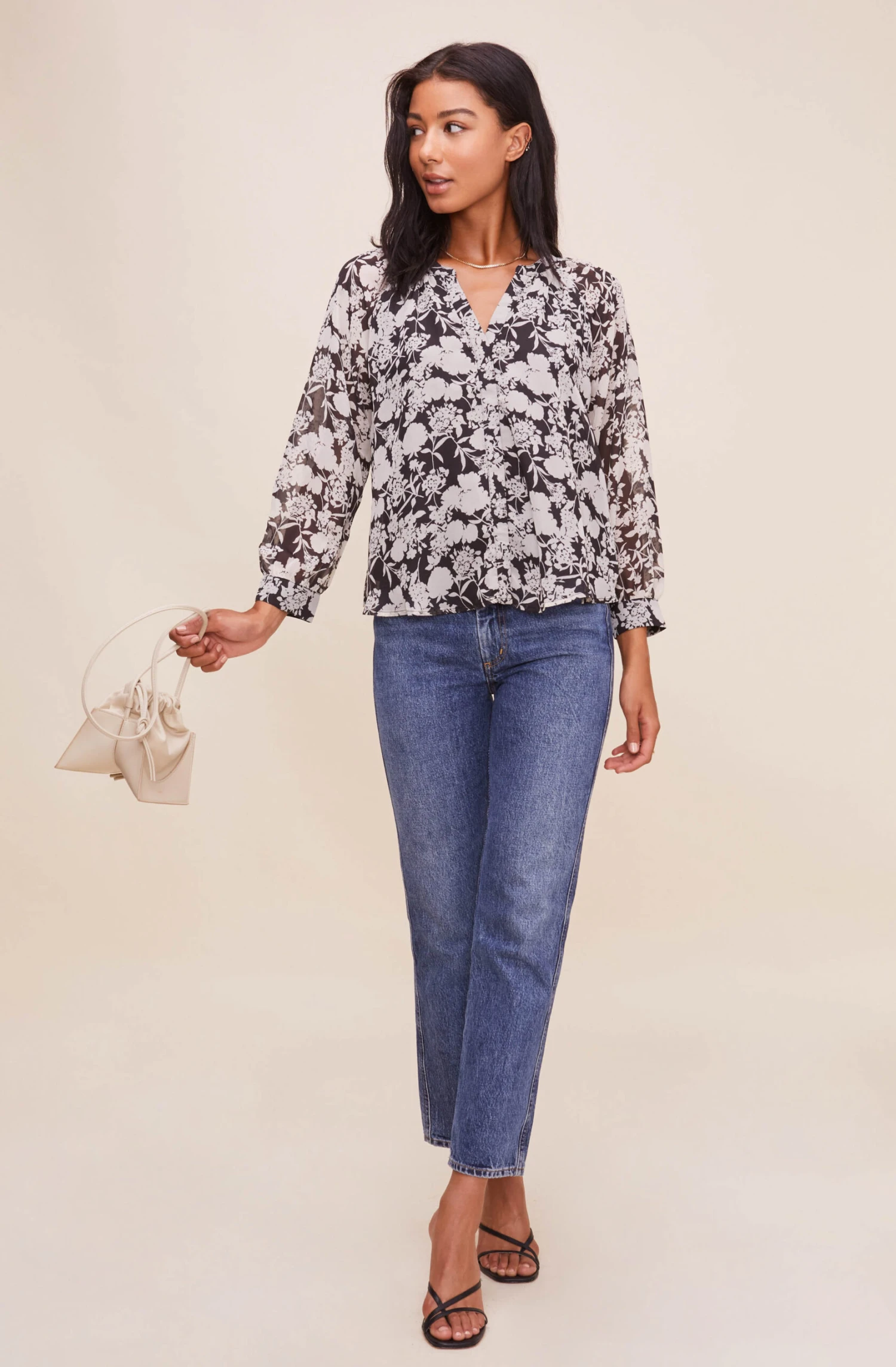 Simply adorable! The Bermuda Top features a stylish silhouette with a V neckline, long sleeves and statement floral print!