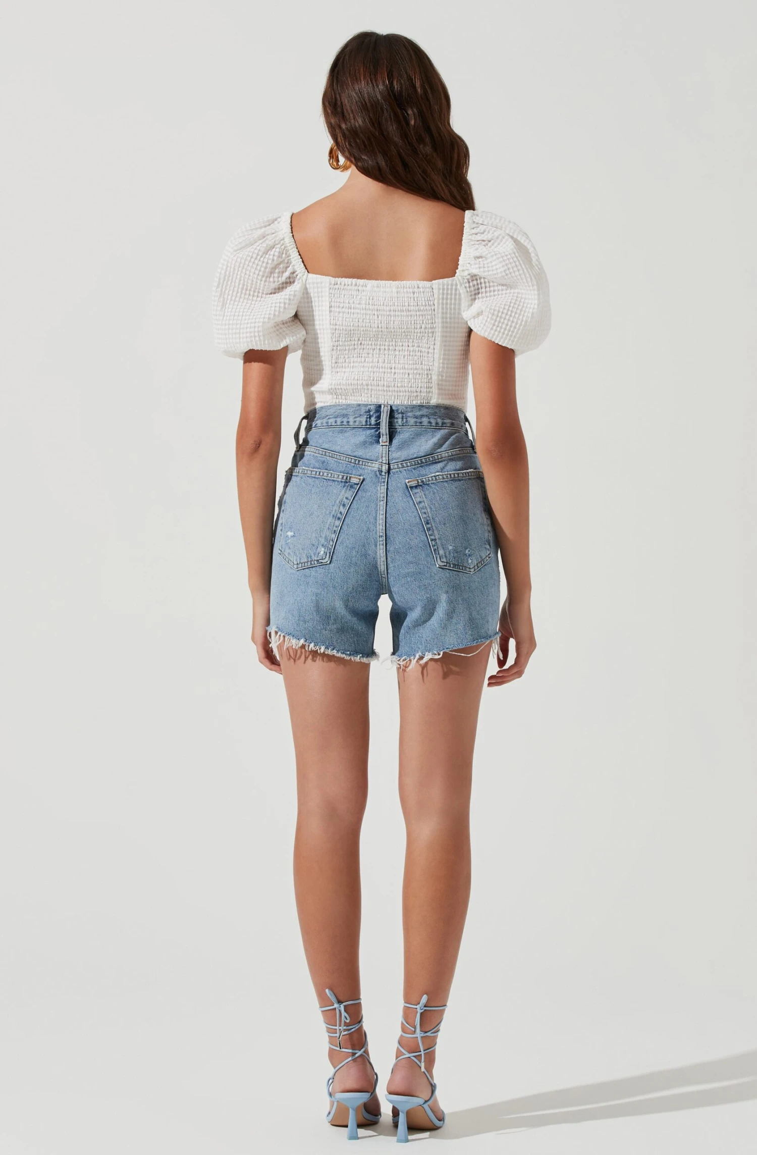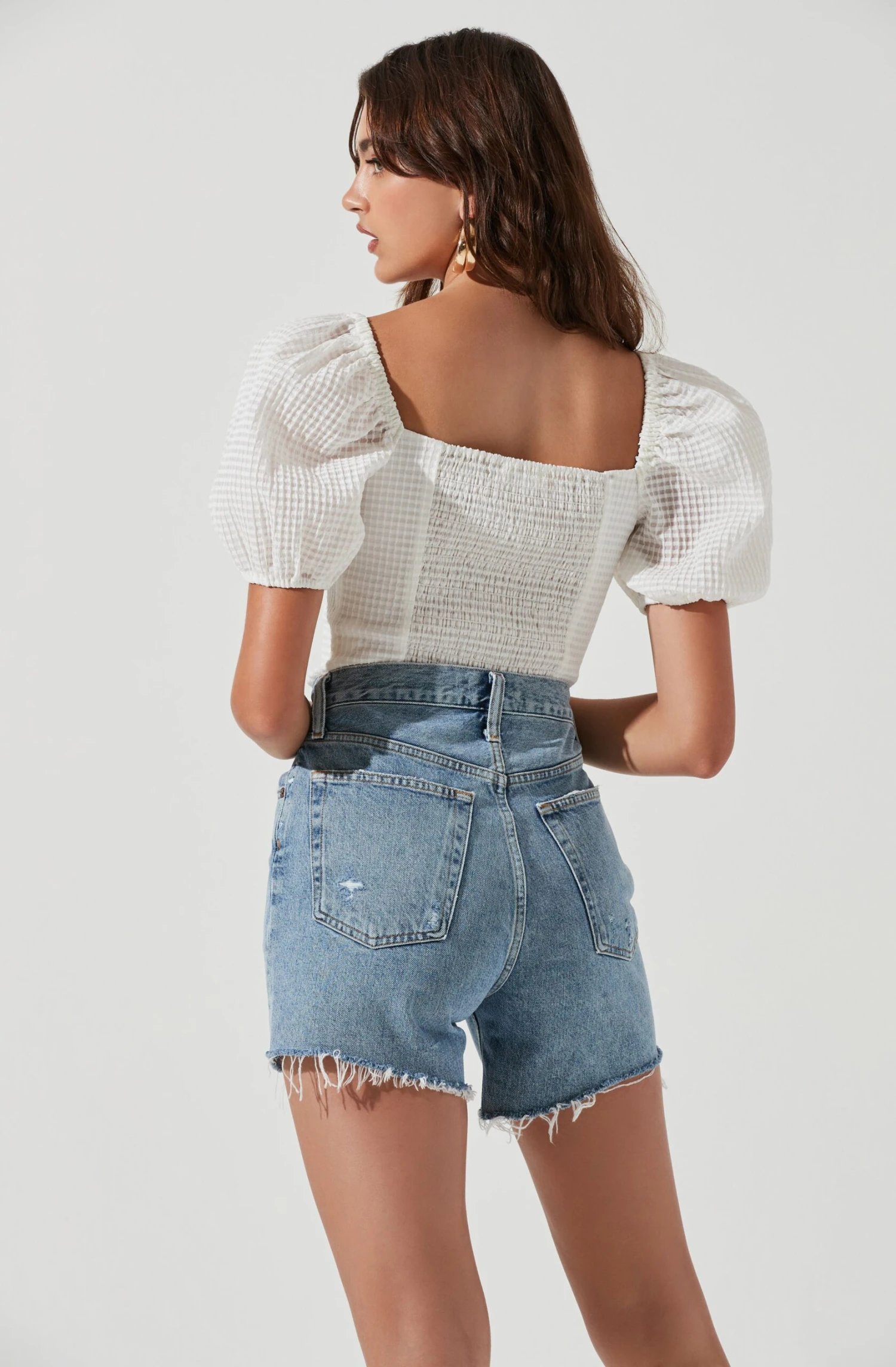 Daydreamer Sweetheart Seersucker Puff Sleeve Top
