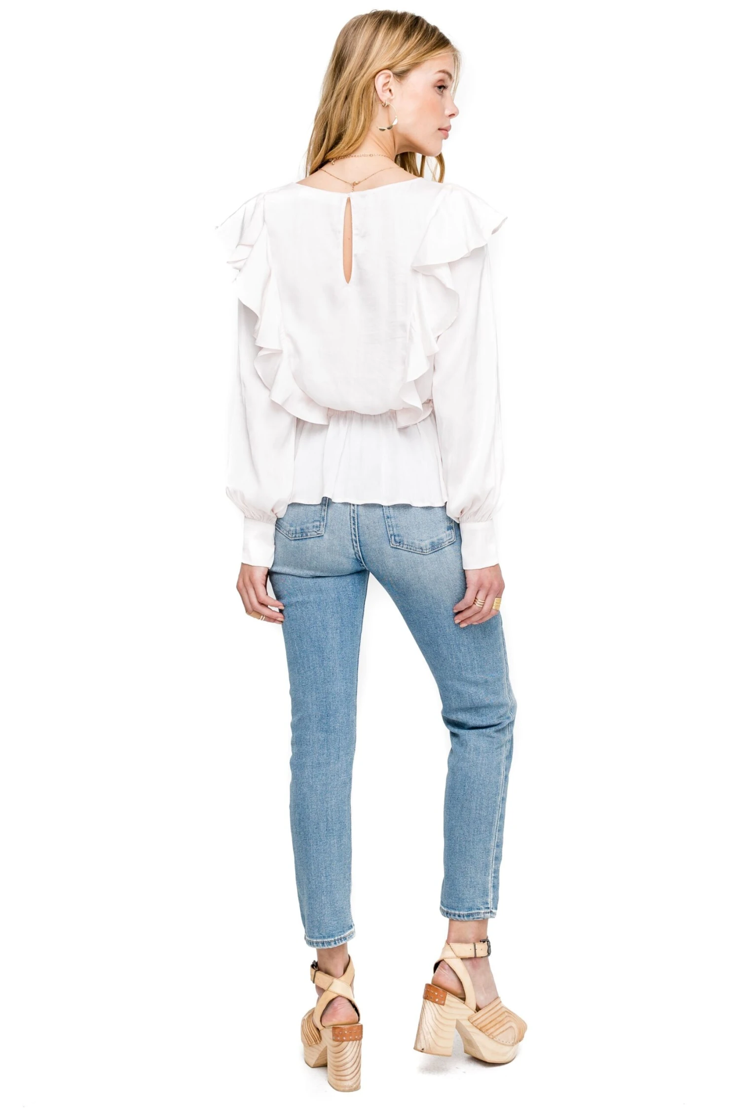 100% Polyester, Lining: 100% Polyester, Length: 23 3/4″ (Size M), Button Closure, Dry Clean Only, Ruffled Blouse, Long Sleeved, Tie Waist, Model is Wearing Size S, Model’s Measurements: Height 5’8″ // Bust 32″ // Waist 24″ // Hips 34″, Fits True to Size, Style#AT12976-003