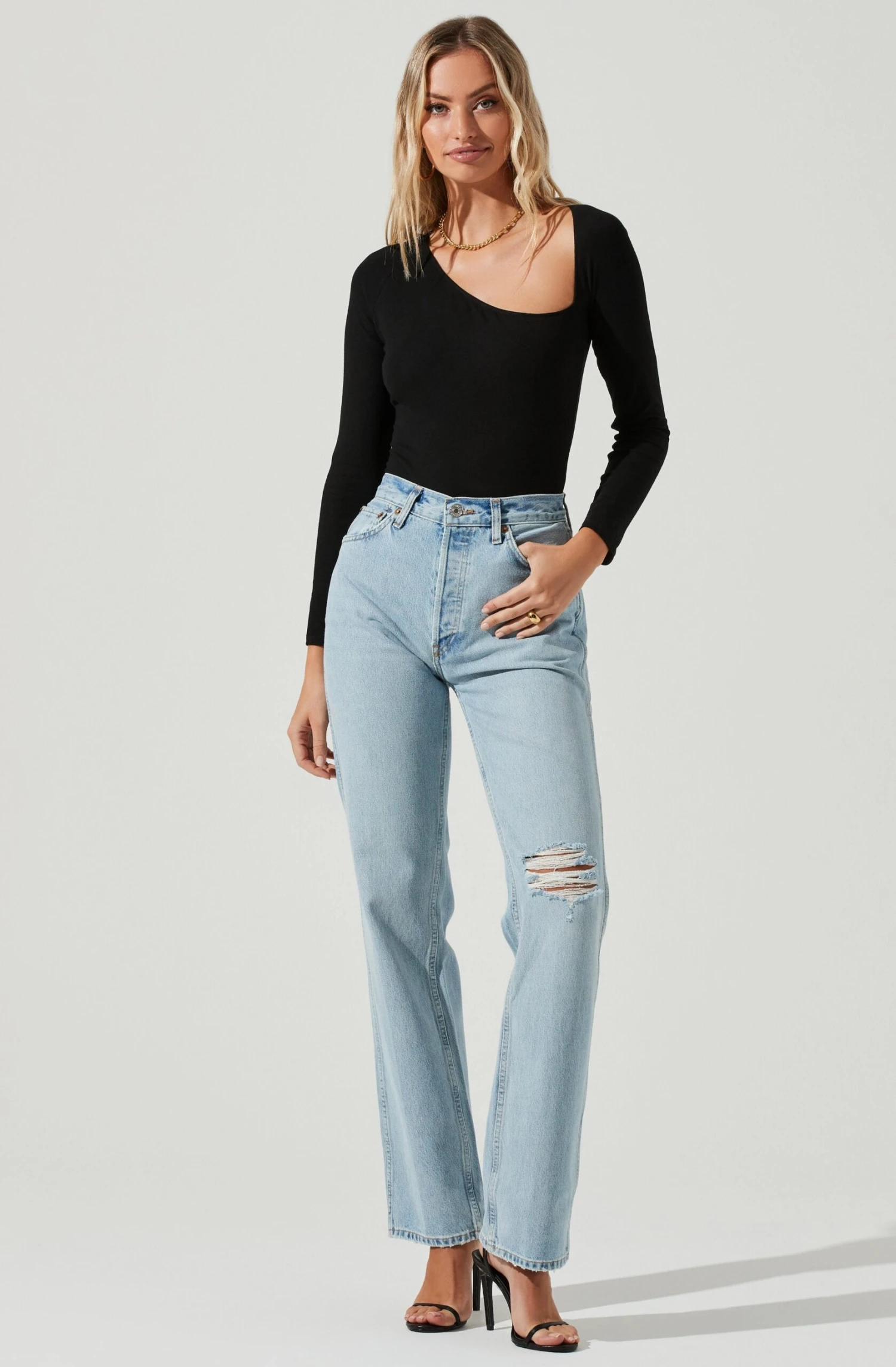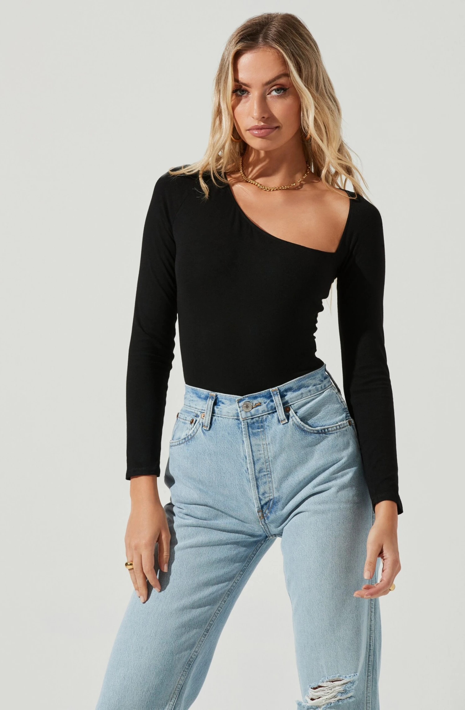 Giving you chic and effortless in one style. The Vivica Bodysuit features a flattering asymmetrical neckline that leads to a fitted silhouettes with long sleeves. Attached bottoms have two snap closures.
